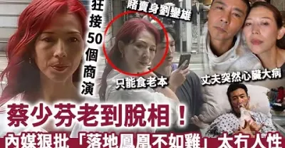 蔡少芬老到脫相!內媒狠批「落地鳳凰不如雞」,丈夫突然心臟大病!撐起成頭家「狂接50個商演」,老母又爛賭賣身劉鑾雄,如今只能食老本!