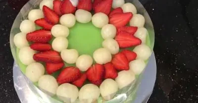 Pandan Layered Cake With Jelly Fruits Topping 水果啫喱班蘭咖椰蛋糕