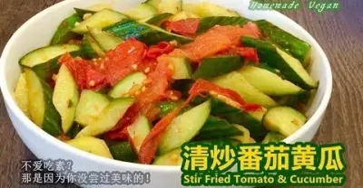 素食料理Vegan《清炒番茄黃瓜 | Stir Fried Tomato & Cucumber》夏天開胃素菜,酸甜清新又美味!這道清炒的素菜重點在於要大火炒,並先爆香薑末炒番茄,這樣才會更有味道。