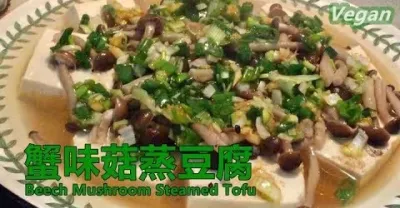 ~"蟹味菇蒸豆腐 Beech Mushroom Steamed Tofu"~蟹味菇味鮮肉厚質韌,口感極佳,還具有獨特的蟹香味,再配上滑嫩清淡的豆腐,味道真的是絕配,令人垂涎!