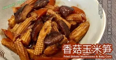《香菇玉米筍 | Fried Shitake Mushrooms & Baby Corn》一款鮮香的素菜,香菇入菜本身已經很香,配上玉米筍的清甜,輕輕鬆鬆打造出一道令人口水直流的美味素菜。