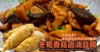 素食料理Vegan《冬筍香菇鹵油豆腐 | Fried Tofu Braised With Bamboo Shoots & Mushroom》 下飯人氣料理,料多味美,吸滿湯汁的油豆腐,好好吃哦!
