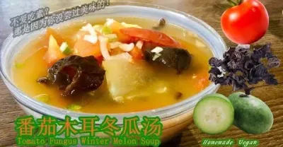 《番茄木耳冬瓜湯|Tomato Fungus Winter Melon Soup》 一道開胃素湯,製作快捷簡易,口感清淡鮮爽,營養豐富,清熱利尿,消腫解膩。