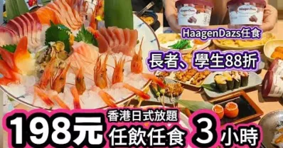 香港日式放題198任飲任食3小時|HaagenDazs雪糕任食|長者,學生88折|瀧本