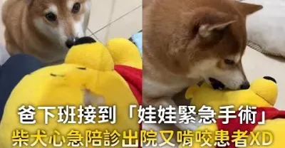 爸下班接到「娃娃緊急手術」柴犬心急陪診出院又啃咬患者XD