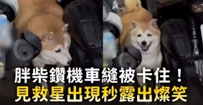 胖柴鑽機車縫被卡住! 見救星出現秒露出燦笑