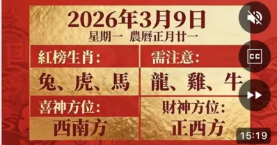 明日小運播報~2026年3月9日(星期一) 農曆正月廿一, 兔、虎、馬大吉