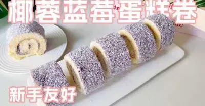 椰蓉藍莓蛋糕卷,新手友好配方,在家就能隨時製作